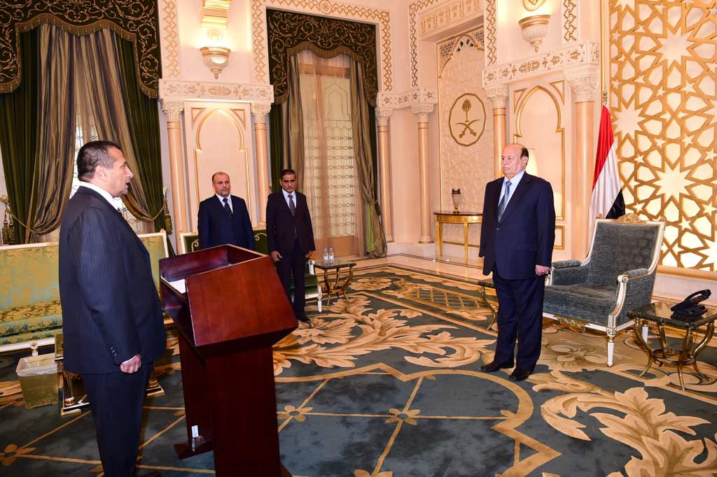 وعقب ادى اليمين الدستورية،وجه فخامة الرئيس السفير الجديد باولويات المهام الملحة المعبرة عن واقع وحاضر اليمن وشرح وبلورة مجمل التحديات التي واجهها ويواجها البلد في ظل تداعيات انقلاب الحوثي وصالح على توافق الشعب اليمني واجماعه الوطني في اطار تمثيل بلده في جمهورية روسيا الاتحادية التي لها مواقف داعمه لليمن وشرعيتها الدستورية في مختلف المحافل الدولية.
