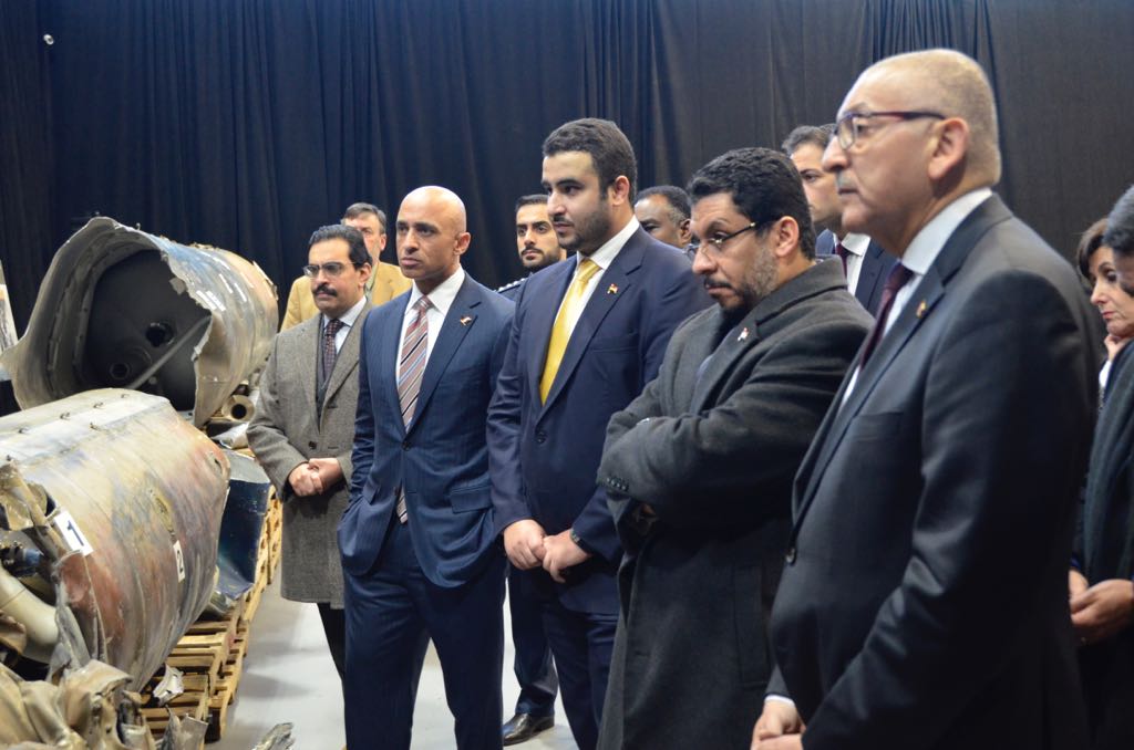 وتم عرض أجزاء من بقايا الصواريخ الباليستية التي أطلقها الحوثيون على مدينتي ينبع والرياض مؤخرا، الى جانب تقديم أدلة قاطعة تثبت قيام الحرس الثوري الإيراني بتزويد الحوثيين بطائرات بدون طيار وصواريخ مضادة للدبابات يصل مداها الى ميلين وقوارب متفجرة مسيرة عن بعت يمكنها إحداث أضرار جسيمة على السفن البحرية المستهدفة واثبات ان جميع هذه الأسلحة إيرانية المنشأ.