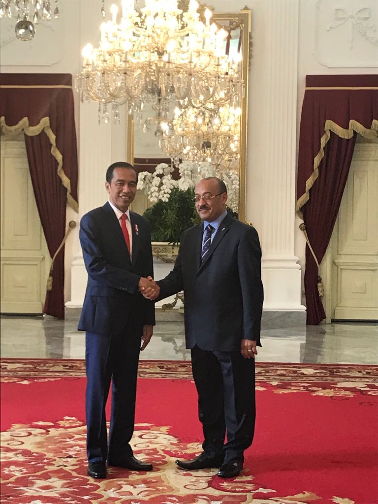 تسلم الرئيس الأندونيسي جوكو ويدودو اليوم أوراق اعتماد الدكتور عبدالغني الشميري كسفير مفوضا للجمهورية اليمنية لدى اندونيسيا .