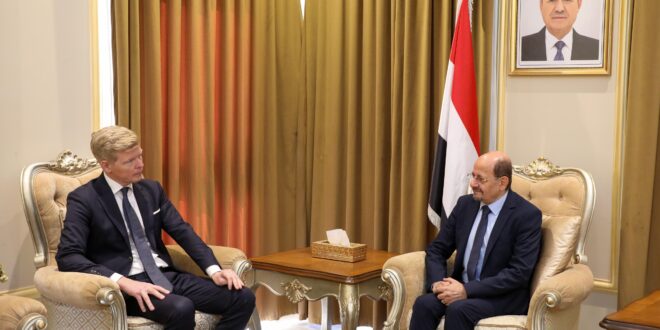 جرى خلال اللقاء مناقشة تطورات الأوضاع على الساحة اليمنية ومستجدات تحركات واتصالات المبعوث الخاص الرامية لدفع قدما جهود السلام في اليمن.