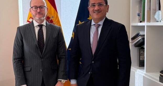 بحث سفير اليمن لدى اسبانيا، أوس العود، اليوم، مع وزير الدولة للشؤون الخارجية والعالمية الاسباني، دييغو مارتينيز بيليو، العلاقات الثنائية بين البلدين الصديقين، وسبل تطوريها، وآخر مستجدات الأوضاع في اليمن ودعم جهود الاغاثة.