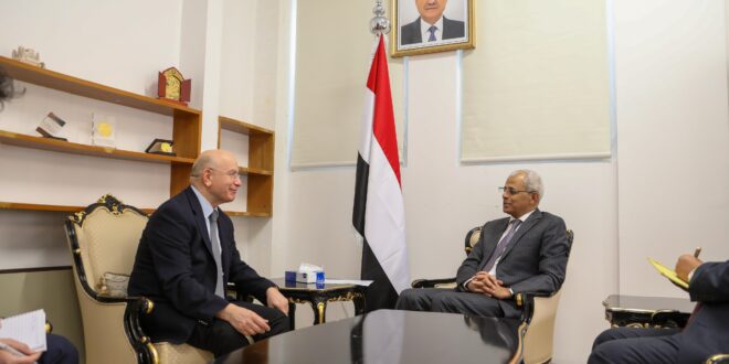 بحث نائب وزير الخارجية وشؤون المغتربين، السفير مصطفى نعمان، اليوم الأربعاء، مع السفير التركي لدى اليمن، مصطفى بولات، عدد من القضايا الإقليمية والدولية ذات الاهتمام المشترك.