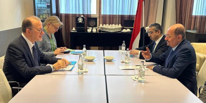 بحث وزير الخارجية وشؤون المغتربين، الدكتور شائع الزنداني، اليوم، مع مساعد الأمين العام، ونائب المدير التنفيذي لليونيسيف، إدوارد شاكر شيبان، سبل تعزيز الشراكة القائمة بين الحكومة اليمنية واليونيسيف في المجالات الإنسانية والتنموية.