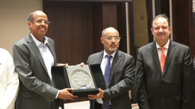 وفي ختام الحفل قام مجلس السفراء العرب بتكريم رئيس مفوضية الاتحاد الافريقي بدرع تذكاري.