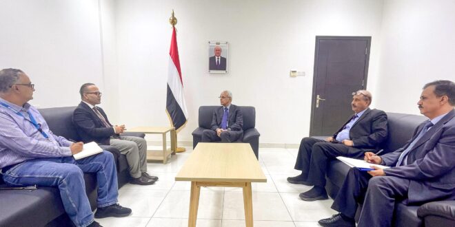 بحث نائب وزير الخارجية وشؤون المغتربين، السفير مصطفى نعمان، اليوم، في مقر الوزارة بالعاصمة الموقتة عدن، تعزيز التعاون والتنسيق بين اللجنة الوطنية لشؤون اللاجئين، ومكتب المفوضية السامية للأمم المتحدة لشؤون اللاجئين بعدن.