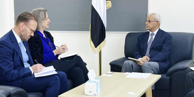 حضر اللقاء مدير إدارة المنظمات الدولية بوزارة الخارجية، السفير مثنى العامري، والمستشار الاقتصادي في مكتب المبعوث الاممي، ديرك جان أومتزجت، ومدير مكتب المبعوث الاممي في عدن بيرت سكوت.
