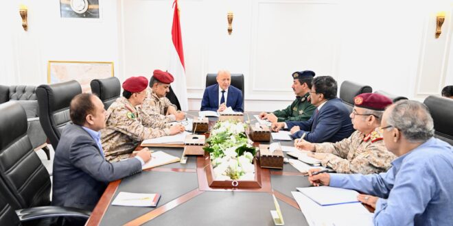 The Ministers of Defense and Interior and Heads of the concerned security bodies reported about the military and security situations, the ongoing efforts to establish security and stability in the temporary capital Aden and the government-held governorates.