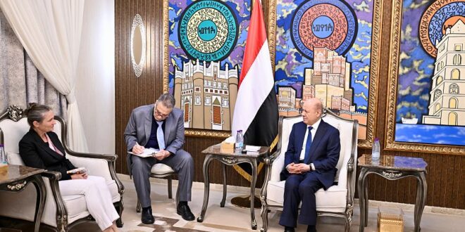 استقبل فخامة الرئيس الدكتور رشاد محمد العليمي، رئيس مجلس القيادة الرئاسي، اليوم الثلاثاء، سفيرة مملكة هولندا لدى اليمن، جانييت سيبين.