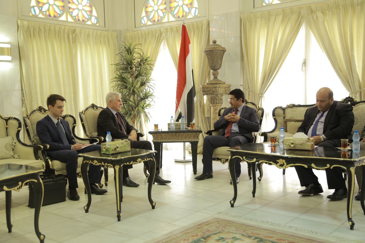 بحث وكيل وزارة الخارجية للشؤون السياسية الدكتور منصور بجاش اليوم مع السفير الروسي لدى اليمن فلاديمير ديدوشكين العلاقات الثنائية بين البلدين الصديقين وسبل تعزيزها وتطويرها.