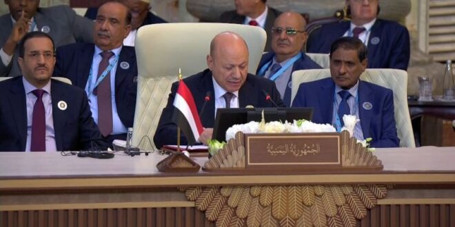واكد رئيس مجلس القيادة الرئاسي، ان اليمن يمثل خط الدفاع الأول عن الأمن العربي الجماعي، موضحا أن أي جهد من جانب الحكومة اليمنية لإصلاح الاوضاع، سيظل مهددًا بالتعثر ما لم يتم دعمها في استعادة مؤسساتها الوطنية، وتقويتها، وردع المليشيات، وتجفيف مصادر الإرهاب، والفوضى.