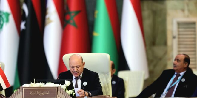 Chairman of the Presidential Leadership Council Dr. Rashad al-Alimi has reaffirmed Yemen’s commitment to Arab unity and the Palestinian cause during his address at the Arab Summit in Baghdad. He emphasized that Yemen will remain a steadfast supporter of Arab national security and a partner in defending the region’s interests.