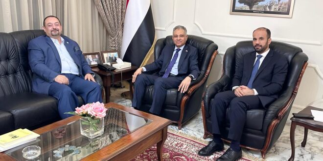 بحث سفير اليمن لدى المملكة الأردنية الهاشمية، الدكتور جلال إبراهيم فقيرة، اليوم مع امين عام الاتحاد العربي للصناعات الغذائية فادي فلاح جبر، تعزيز التعاون المشترك بين الجانبي لتحقيق الأمن الغذائي الزراعي في اليمن.