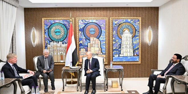 وفي اللقاء، رحب رئيس مجلس القيادة الرئاسي بالمبعوث الاممي، مثنياً على احاطته الأخيرة أمام مجلس الأمن، وما تضمنته من مواقف حول متطلبات وقف التصعيد، وتحسين الاقتصاد، والإفراج عن موظفي الأمم المتحدة والمنظمات الدولية المحتجزين لدى المليشيات الحوثية الارهابية.