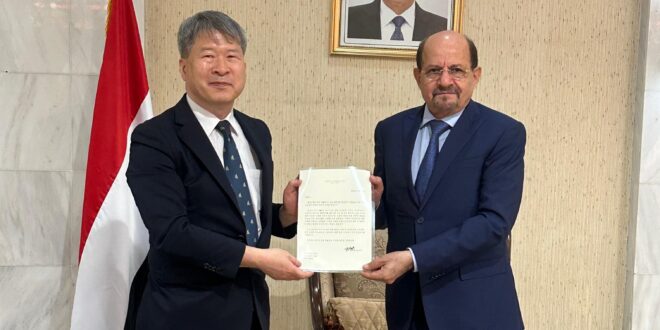 وسلم السفير الكوري، الوزير الزنداني، خطاب تهنئة وزير الخارجية الكوري، تشو هيون، بمناسبة الذكرى الأربعين لتأسيس العلاقات الدبلوماسية بين الجمهورية اليمنية وجمهورية كوريا، والذي عبر فيها عن تطلعه لأن تكون هذه المناسبة محطة جديدة لتوسيع آفاق التعاون بين البلدين الصديقين..مؤكداً حرص بلاده على مواصلة تعزيز هذه العلاقات.