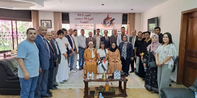 أقامت سفارة الجمهورية اليمنية لدى المملكة المغربية، اليوم، احتفالاً رسمياً بمناسبة العيد الوطني الـ 63 لثورة الـ 26 سبتمبر المجيدة.