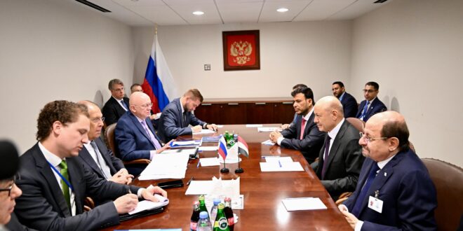Chairman of the Presidential Leadership Council Dr. Rashad al-Alimi and Council Member Dr. Abdullah al-Alimi met Friday with the Minister of Foreign Affairs of the Russian Federation, Sergei Lavrov, on the sidelines of the United Nations General Assembly meetings.