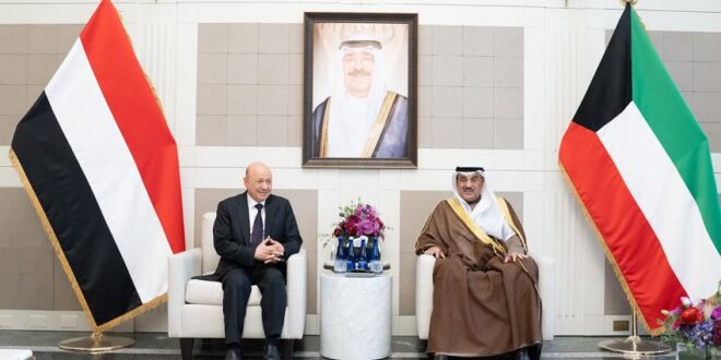 President al-Alimi highly appreciated the honorable positions of the State of Kuwait alongside the Yemeni people at various stages and circumstances, and its sincere keenness to achieve their aspirations to restore state institutions, security, stability, peace, and development, in addition to the facilities and attention that the Yemeni community receives from the Kuwaiti authorities at all levels.