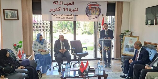 احتفلت سفارة الجمهورية اليمنية، في المملكة المغربية، اليوم بالذكرى الـ 62 لثورة 14 أكتوبر المجيدة.