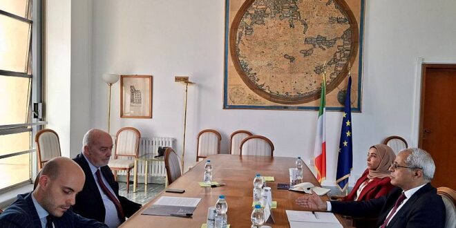 حضرت اللقاء سفيرة بلادنا لدى إيطاليا اسمهان الطوقي، والمختص في الادارة العامة لدول الخليج واليمن بوزارة الخارجية الايطالية وليوناردو نيشي.
