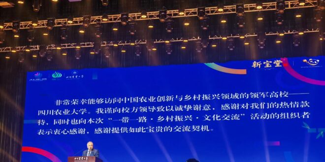 وخلال زيارته لجامعة سيتشوان الزراعية، القى الميتمي، كلمة أمام أعضاء هيئة التدريس والطلاب، عبّر فيها عن تقدير اليمن للعلاقات التاريخية المتميزة مع جمهورية الصين الشعبية..مشيدًا بدور الجامعات والمؤسسات الأكاديمية في تعزيز التبادل الثقافي والعلمي بين البلدين..مؤكدا حرص اليمن على توسيع مجالات التعاون الأكاديمي والتقني مع الجامعات الصينية، خصوصًا في مجالات الزراعة الحديثة والأمن الغذائي والتنمية الريفية، بما يسهم في دعم جهود التنمية المستدامة في اليمن.