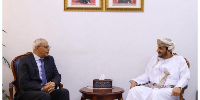 بحث نائب وزير الخارجية وشؤون المغتربين، مصطفى نعمان، اليوم، مع وكيل وزارة الخارجية العماني، للشؤون السياسية، الشيخ خليفة الحارثي، العلاقات الثنائية بين البلدين الشقيقين، وتوسيع الشراكة والتعاون بين البلدين.