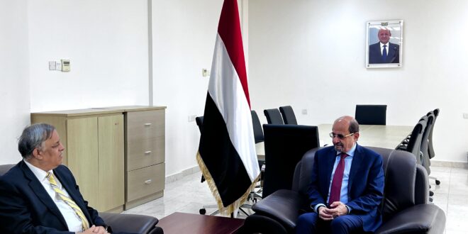 Foreign Minister, Dr. Shaya Zindani, met with India’s Ambassador to Yemen Dr. Sohail Ijaz Khan to explore ways to strengthen bilateral relations between the two countries.