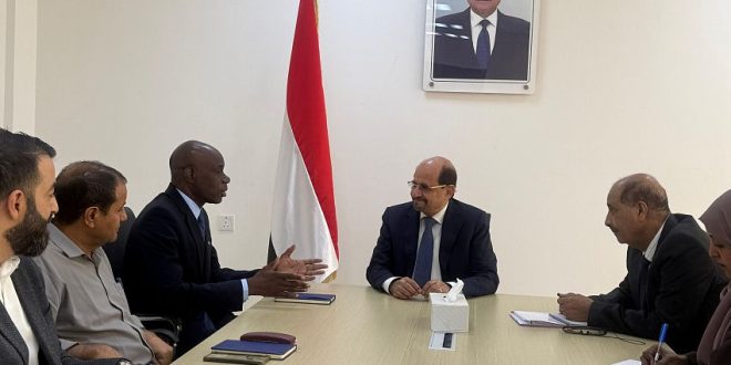 بحث وزير الخارجية وشؤون المغتربين، الدكتور شائع الزنداني، اليوم في العاصمة المؤقتة عدن، مع مدير منظمة الأغذية والزراعة للأمم المتحدة (الفاو) لدى اليمن، الدكتور آدم ياو، افاق التعاون الثنائي في مجالات الزراعة والري والأمن الغذائي.
