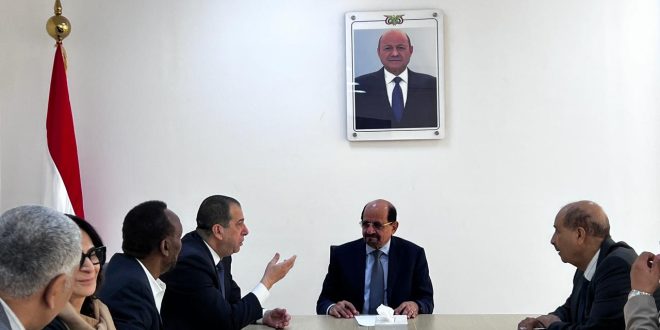 بحث وزير الخارجية وشؤون المغتربين، الدكتور شائع الزنداني، اليوم، في العاصمة المؤقتة عدن، مع المبعوث الخاص لبرنامج الغذاء العالمي، الدكتور عبدالله بردات، تعزيز التعاون الثنائي، وآليات التنسيق في العمل الإنساني.
