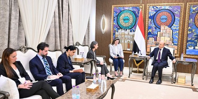 His Excellency President Dr. Rashad al-Alimi, Chairman of the Presidential Leadership Council (PLC), met today, Sunday, the Ambassador of the Republic of France Katherine Corm Kammoun, the Ambassador of the United Kingdom Abda Sharif and the Acting Ambassador of the United States Jonathan Beich to discuss the latest developments in the Yemeni national arena, mainly the developments in the eastern governorates.