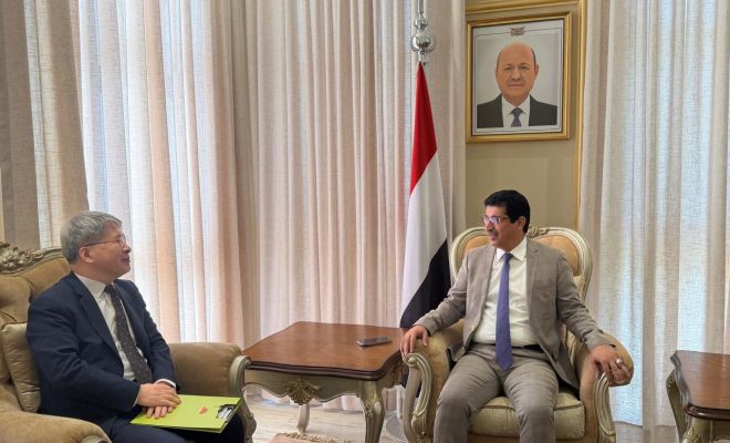 بحث وكيل وزارة الخارجية للشؤون السياسية، الدكتور منصور بجاش، اليوم، مع السفير الكوري، بونج كاي دو، سبل تعزيز وتطوير التعاون الثنائي بين البلدين في مختلف المجالات، بما يخدم المصالح المشتركة للبلدين.واستعرض وكيل وزارة الخارجية، مستجدات الأوضاع في اليمن، والجهود التي تبذلها الحكومة اليمنية لتحقيق السلام العادل والشامل، وإنهاء انقلاب المليشيات الحوثية، واستعادة مؤسسات الدولة..مؤكداً حرص الحكومة على دعم مساعي الأمم المتحدة، بما يحقق تطلعات الشعب اليمني في الأمن والاستقرار.
