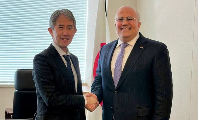 بحث سفير اليمن لدى اليابان، عادل السنيني، اليوم، مع رئيس دائرة الشرق الاوسط وافريقيا في وزارة الخارجية اليابانية، تعزيز التعاون الثنائي، مستجدات الأوضاع في اليمن.