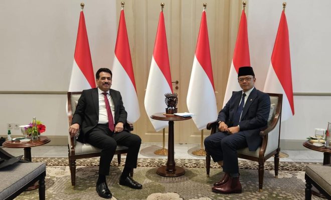 حضر اللقاء مدير دائرة الشرق الأوسط بوزارة الخارجية الإندونيسية أهرول ساني فتح الرحمن.