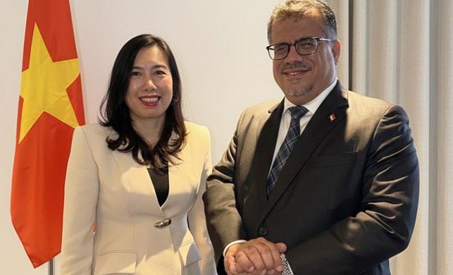 اطلع سفير اليمن غير المقيم لدى جمهورية فيتنام الاشتراكية، الدكتور عادل باحميد، نائبة وزير الخارجية الفيتنامية، لي ثي تو هانغ، على مستجدات الأوضاع السياسية والإنسانية في اليمن.