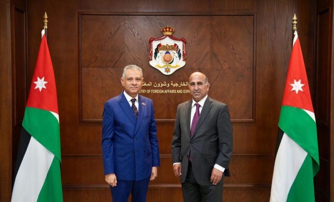 بحث سفير اليمن لدى المملكة الاردنية الهاشمية، الدكتور جلال فقيرة، اليوم، مع أمين عام وزارة الخارجية وشؤون المغتربين الاردنية، السفير ضيف الله الفايز، العلاقات الثنائية بين البلدين الشقيقين وسبل تعزيزها.