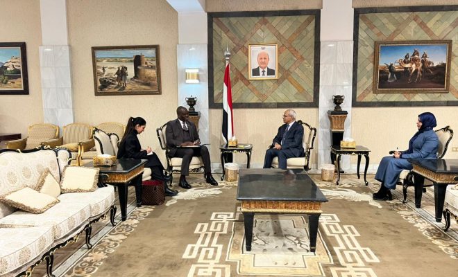 بحث نائب وزير الخارجية وشؤون المغتربين، مصطفى نعمان، اليوم، مع سفير جمهورية جنوب أفريقيا لدى اليمن، موغبو ديفيد مغابي، سبل تطوير العلاقات الثنائية وتعزيز التعاون بين البلدين الصديقين.