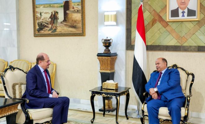عضو مجلس القيادة الخنبشي يلتقي رئيس الوزراء ويناقش معه ملامح المرحلة القادمة وجهود تطبيع الحياة وتعزيز الاستقرار