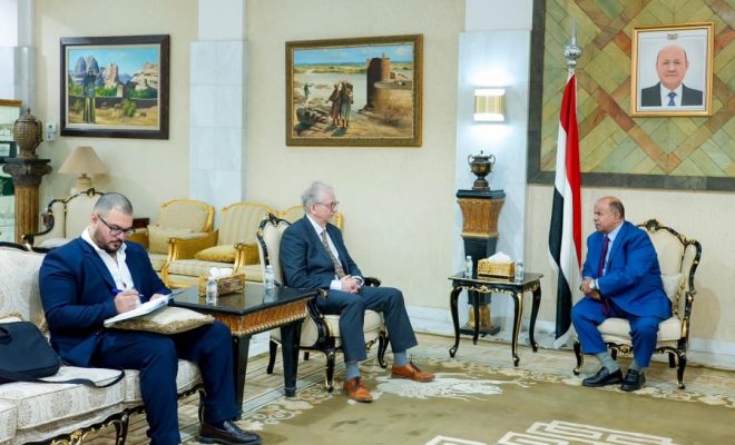 بحث عضو مجلس القيادة الرئاسي، محافظ حضرموت، سالم أحمد الخنبشي، اليوم، مع السفير الالماني لدى اليمن، توماس فريدريش شنايدر، سبل تعزيز وتطوير العلاقات الثنائية بين البلدين الصديقين.