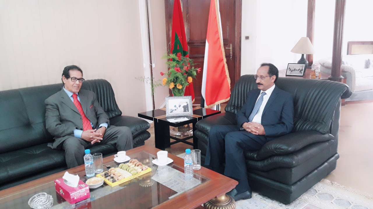 بحث سفير بلادنا لدى المغرب، عزالدين الاصبحي، اليوم، مع مدير دائرة المشرق في وزارة الخارجية والتعاون الدولي بالمملكة المغربية، مصطفى رزوقي، علاقات التعاون الاقتصادي والثقافي بين البلدين الشقيقين وسبل تطويرها وتعزيزها .