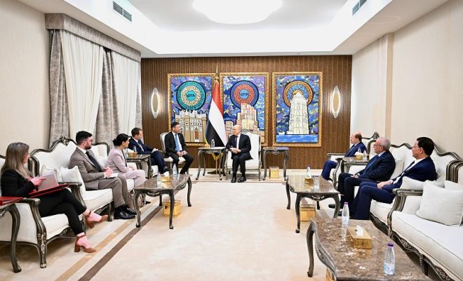 His Excellency President Dr. Rashad al-Alimi, Chairman of the Presidential Leadership Council (PLC) received on Monday the British Minister of State for Middle East Affairs Hamish Falconover.