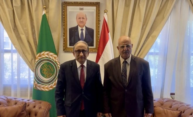 بحث القائم بأعمال مندوب اليمن الدائم لدى جامعة الدول العربية، السفير الدكتور علي موسى، اليوم، مع الأمين العام لمجلس الوحدة الاقتصادية العربية، السفير محمدي الني، سبل تعزيز التعاون المشترك بين المندوبية والمجلس، وآليات تطوير العمل العربي المشترك في المجالات الاقتصادية، والاستفادة من الموارد المتاحة.