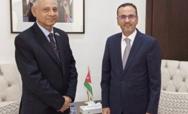 بحث سفير اليمن لدى المملكة الأردنية الهاشمية، الدكتور جلال فقيرة، اليوم، مع رئيس الدائرة العربية والشرق أوسطية في وزارة الخارجية وشؤون المغتربين الأردنية، شاكر العموش، العلاقات الثنائية بين البلدين الشقيقين.
