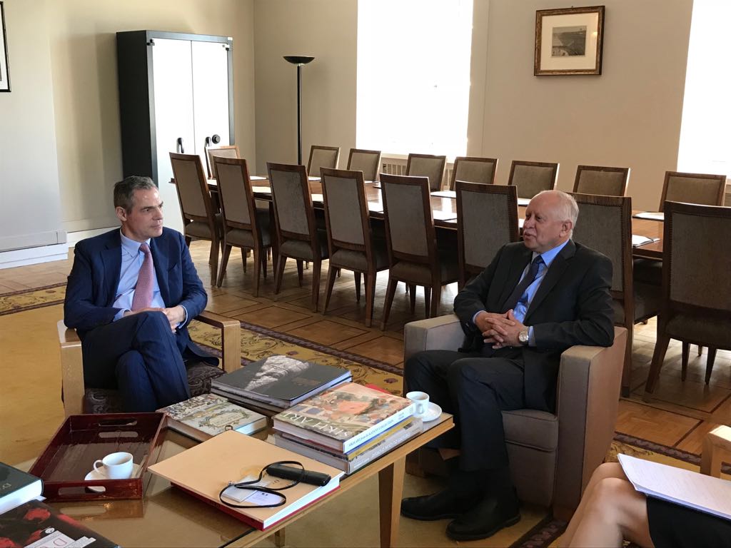بحث سفير بلادنا لدى فرنسا، الدكتور، رياض ياسين، اليوم في باريس، رئيس دائر ة الشرق الأوسط وشمال إفريقيا بوزارة الخارجية الفرنسية جيروم بونافون، عدد من القضايا ذات الاهتمام المشترك بين البلدين الصديقين منها تطورات الأوضاع على الساحة اليمنية والدولية في ظل التدخلات الإيرانية في الشأن اليمني والموقف الفرنسي إزاء ذلك.