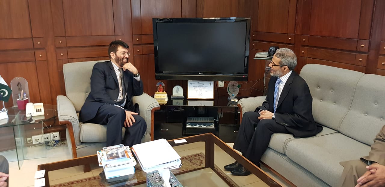 من جانب اخر التقى السفير مع مدير عام المنظمات الدولية بوزارة الخارجية الباكستانية خليل هاشمي .