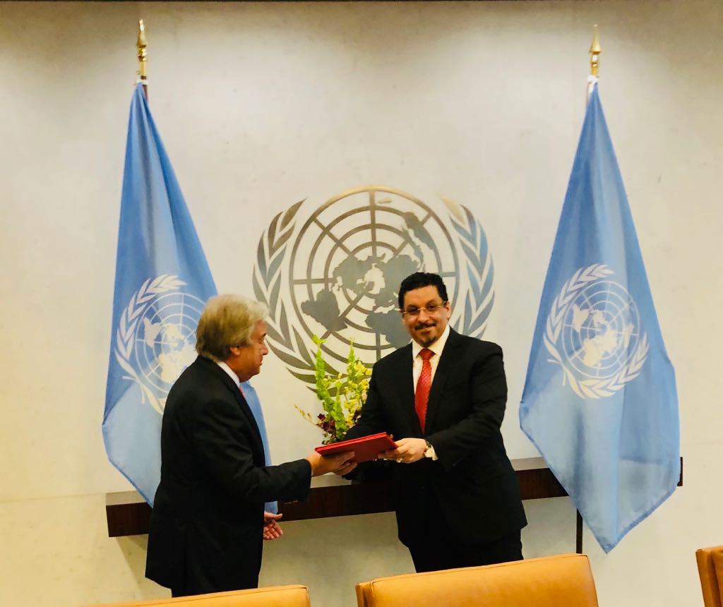 تسلم الأمين العام للأمم المتحدة أنطونيو غوتيريز ،اليوم ،في مقر الأمم المتحدة بنيويورك أوراق اعتماد الدكتور أحمد عوض بن مبارك سفيراً ومفوضاً فوق العادة ومندوباً دائماً للجمهورية اليمنية لدى منظمة الأمم المتحدة.