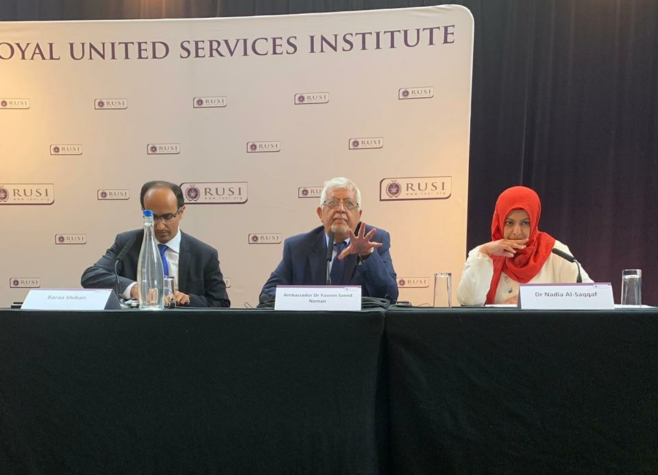 وخلال الندوة التي نظمها المركز الملكي للدفاع والأمن (روسي) في لندن بحضور وزير الإعلام معمر الإرياني ، قال الدكتور ياسين ان مخرجات مؤتمر الحوار الوطني الشامل شكلت أسس بناء الدولة الوطنية التي توافق عليها اليمنيون بعد عقود من الاختلاف وجولات عديدة من الصراعات.