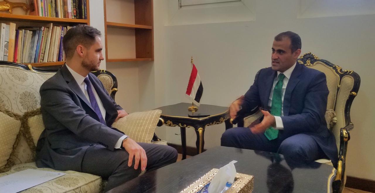 وجدد الحضرمي، حرص الحكومة على إنجاح عملية السلام ودعم جهود الأمم المتحدة وفقاً للمرجعيات الثلاث المتفق عليها، واستعرض آخر المستجدات فيما يتصل بعملية السلام لاسيما الجهود الأممية لتنفيذ اتفاق ستوكهولم، مشددا على أهمية التنفيذ الكامل لاتفاق الحديدة ابتداءاً من المرحلة الأولى وعلى أهمية تنفيد ما ورد حول السلطة المحلية في الاتفاق قبل الشروع في المرحلة الثانية.