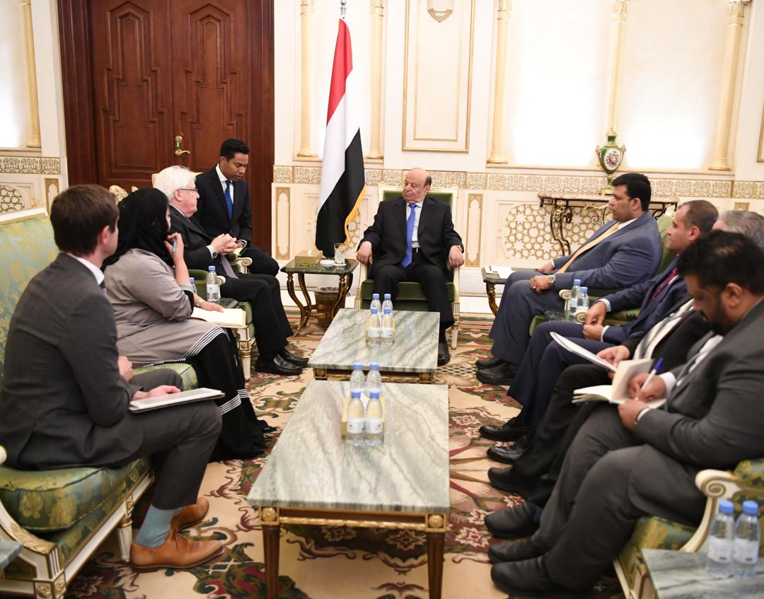 من جانبه عبر المبعوث الاممي عن سروره بهذا اللقاء الذي يأتي في اطار دعم جهود السلام والتأكيد على ان الحلول للازمة اليمنية لن تأتي نتائجها الا عبر مساراً واحداً وهو الحكومة الشرعية التي يعترف بها المجتمع الدولي ..ثمنين استيعاب فخامة الرئيس لمختلف القضايا المتصلة باليمن واحتواء مختلف التداعيات لمصلحة الشعب اليمني وامنه ووحدته واستقراره..لافتاً الى الجهود التي سيبذلها في اطار مهامه لتحريك عملية السلام قدماً فيما يتصل بتفهمات الحديدة في اطار اتفاق ستوكهولم.
