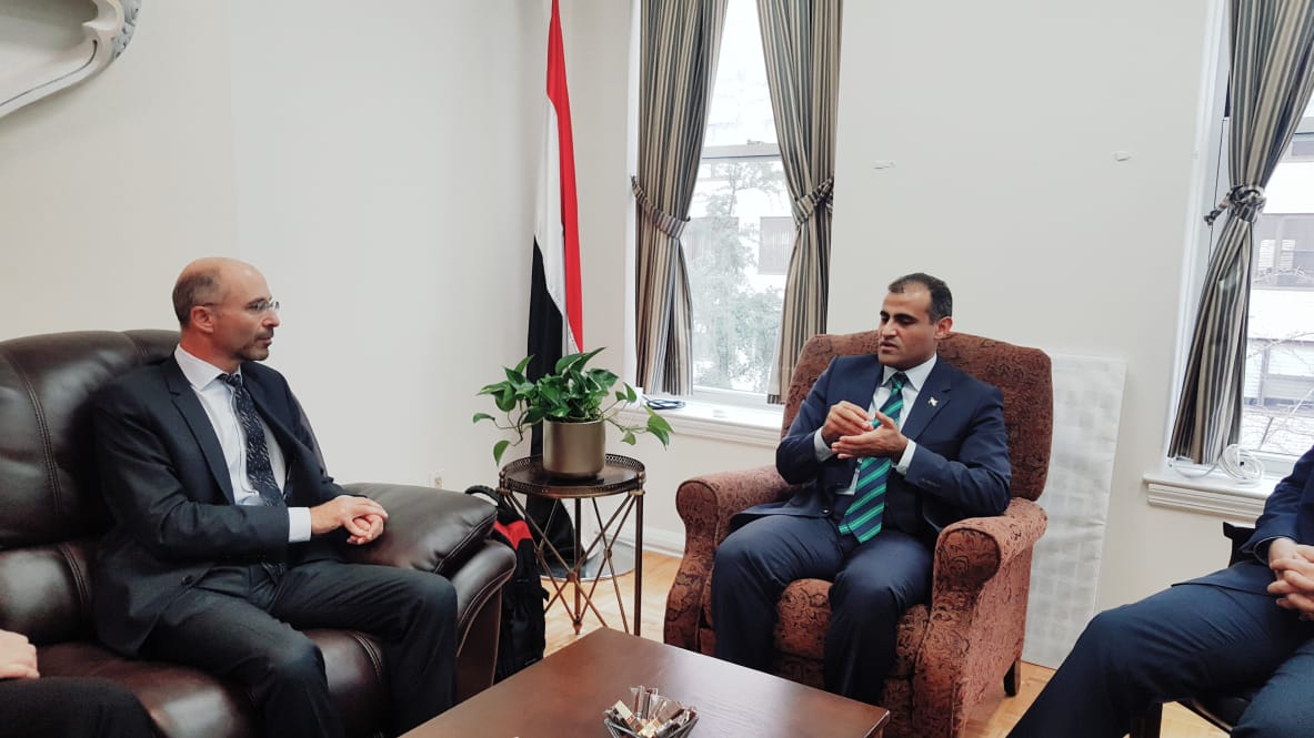 اطلع وزير الخارجية محمد الحضرمي، اليوم في نيويورك، رئيس مجموعة الأزمات الدولية روبرت مالي،على مستجدات الوضع السياسي والاقتصادي والامني في اليمن ومستوى تنفيذ اتفاق الحديدة وأثار تعنت مليشيات الحوثيين على عملية السلام وتبعات التمرد المسلح لما يسمى بالمجلس الانتقالي الجنوبي المدعوم من دولة الامارات وما لحقه من قصف جوي على الجيش الوطني في عدن وابين.