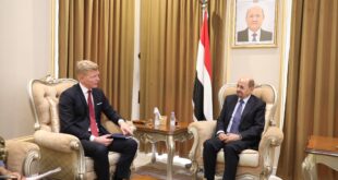 استقبل فخامة الرئيس الدكتور رشاد محمد العليمي، رئيس مجلس القيادة الرئاسي، اليوم الثلاثاء، القائم باعمال سفارة الولايات المتحدة الامريكية لدى اليمن جوناثان بيتشا، للبحث في العلاقات الثنائية المتميزة بين البلدين الصديقين، وافاق تعزيزها، وتطويرها على كافة الاصعدة. كما جرى في اللقاء مناقشة مستجدات الاوضاع المحلية، والقضايا ذات الاهتمام المشترك، وفي …
