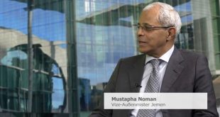 قدم نائب وزير الخارجية وشؤون المغتربين مصطفى نعمان، في لقاء تلفزيوني مع قناة TV Berlin الألمانية، رؤية شاملة حول أولويات السياسة الخارجية اليمنية، وطبيعة العلاقات اليمنية-الألمانية، إلى جانب التحديات الإنسانية والأمنية التي تواجه اليمن وانعكاساتها المباشرة على الملاحة الدولية والتأثيرات الإقليمية والدولية. وتطرق نعمان إلى العلاقات اليمنية-الألمانية، واصفا إياها …
